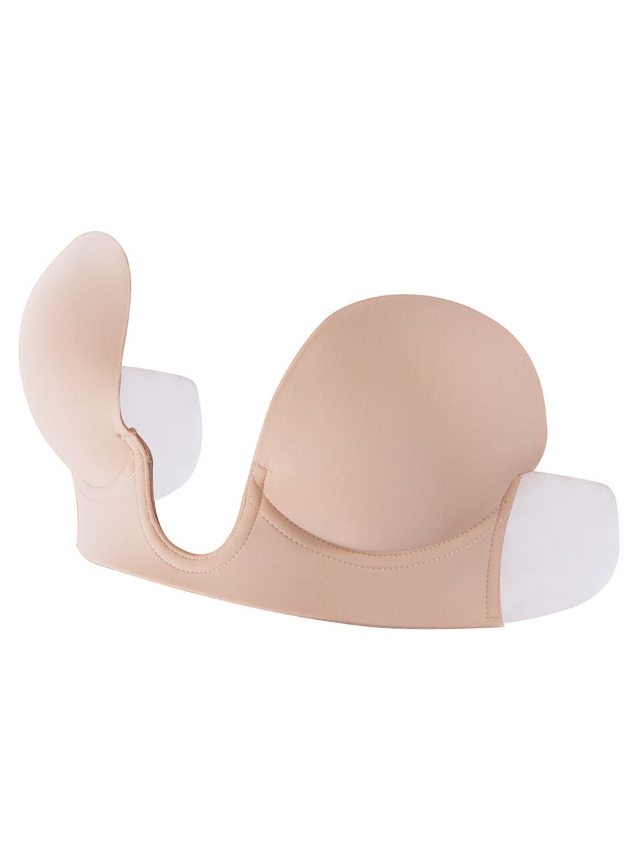 1. Use the bra to lift breasts up then stick the U Plunge Backless Strapless Bra to the skin where your bra would